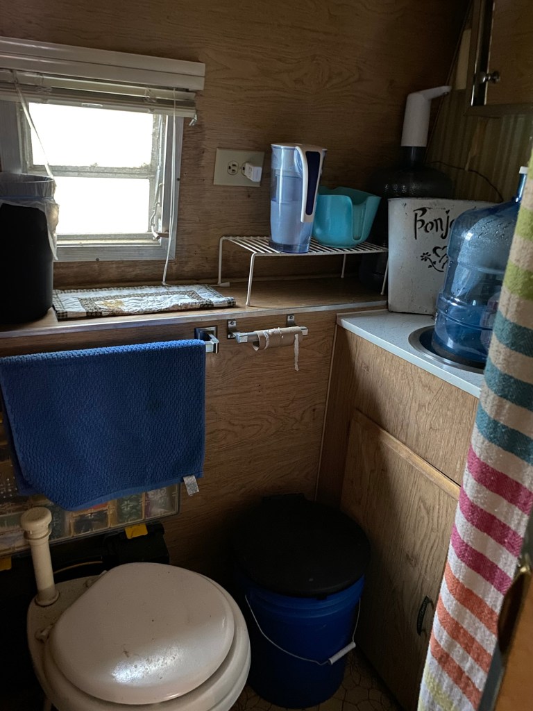 Hans and Tilly lived there but Boss had passed. I’ve always dry camped here. I always have. I’ve never used running water in the caravan. Okay. I’ve switched it from trailer to caravan after being in England because I like the word better. I think it fits better, too.