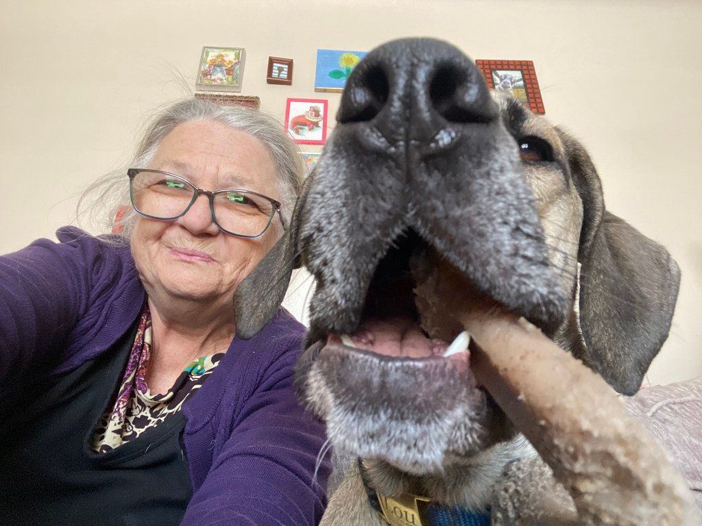 The next day I flew to the Twin Cities in Minnesota. Teddy picked me up at the airport and Bonnie stayed home. It was almost 2 am. She had a broken ankle. Here is another example of my poor skills as a historian. The only photo I have at their house is with their dog Lou.